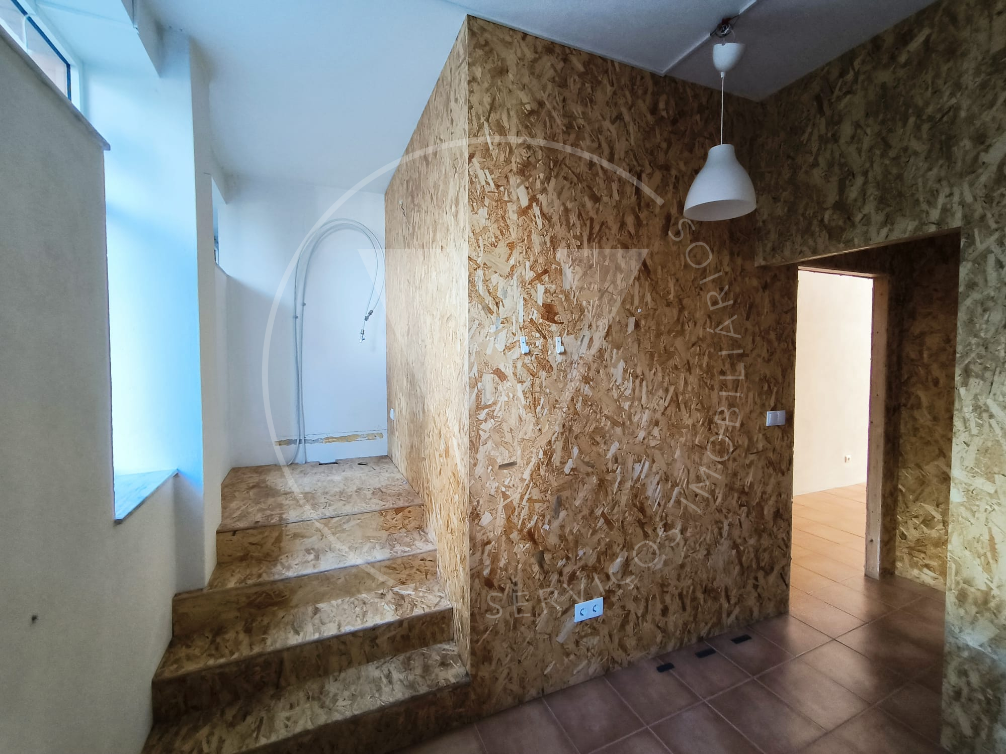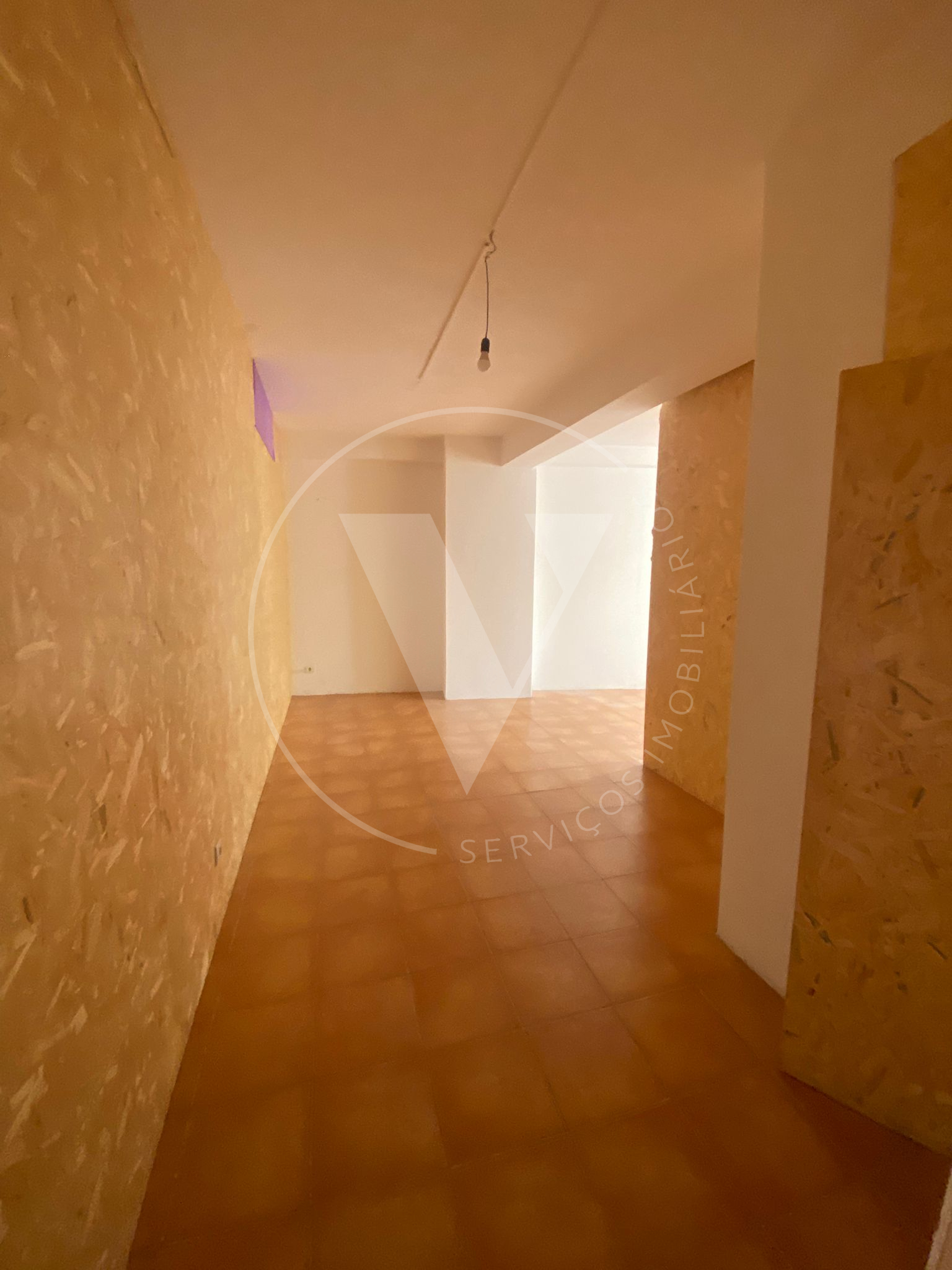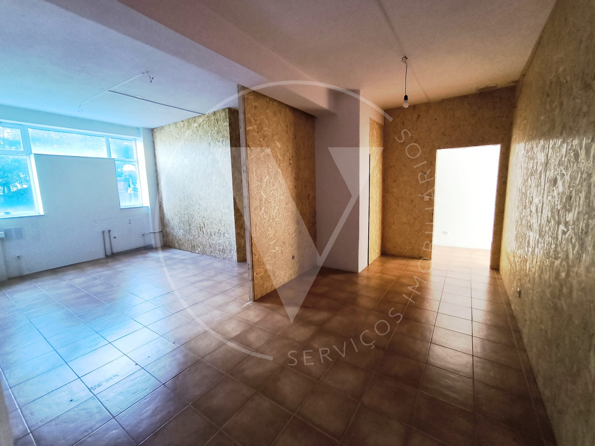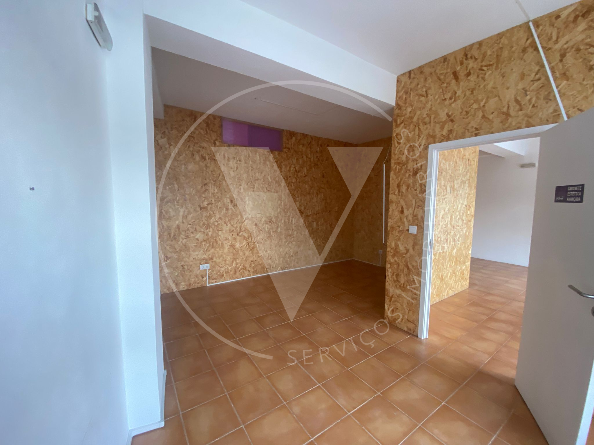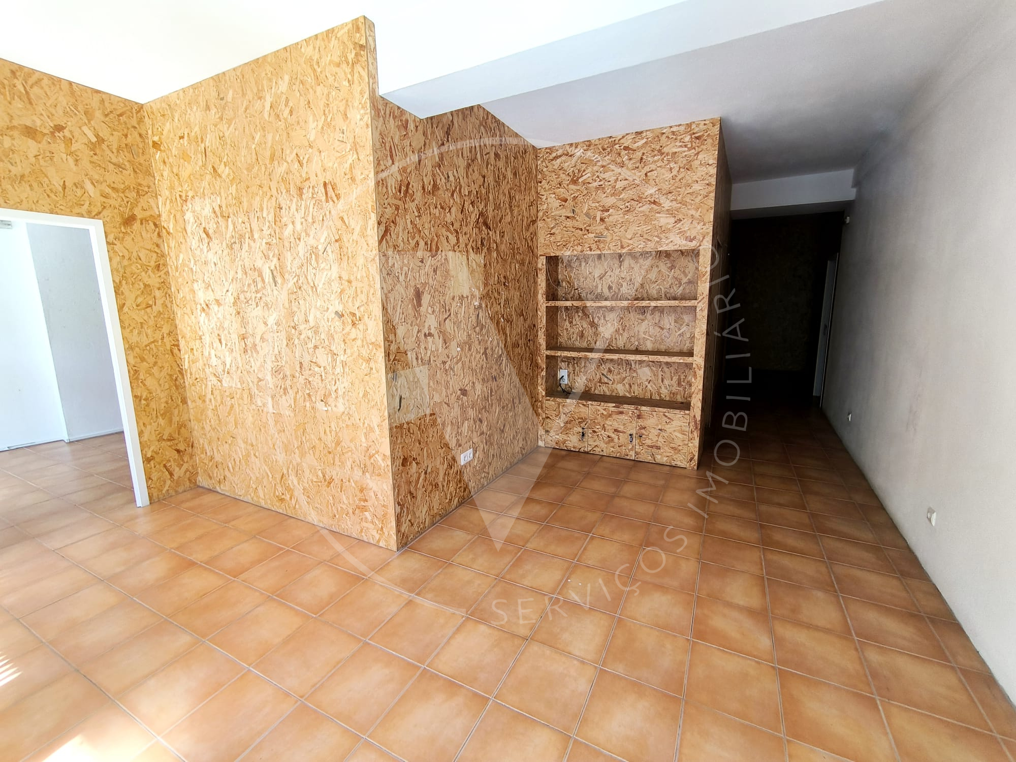 O espaço encontra-se atualmente dividido em 3 áreas distintas, através de painéis em OSB (placa de madeira prensada), permitindo reorganização fácil conforme o tipo de negócio.